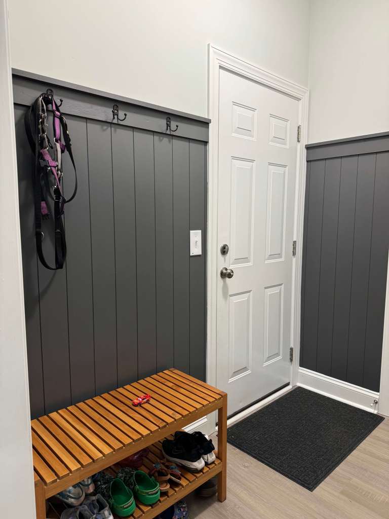 We started with a small bench and three hooks over it for jackets, but it didn’t take long to realize that it was not going to be enough. Thus we started planning.