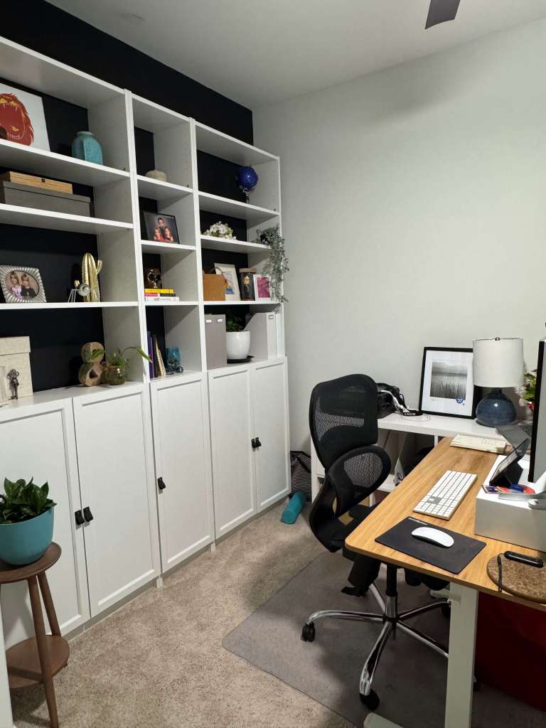 Here’s the before, with an Ikea Kallax shelf that we already owned.